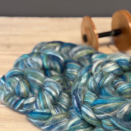 Aquarius Merino Wool & Tussah Silk - Blues & Greens - Combed Top - Wool Roving - Fiber for Spinning