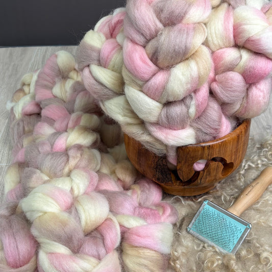 Callisto Wool Top- Pink, Lavender & Cream - Combed Top - Wool Roving for Spinning wool or felting