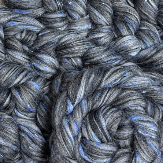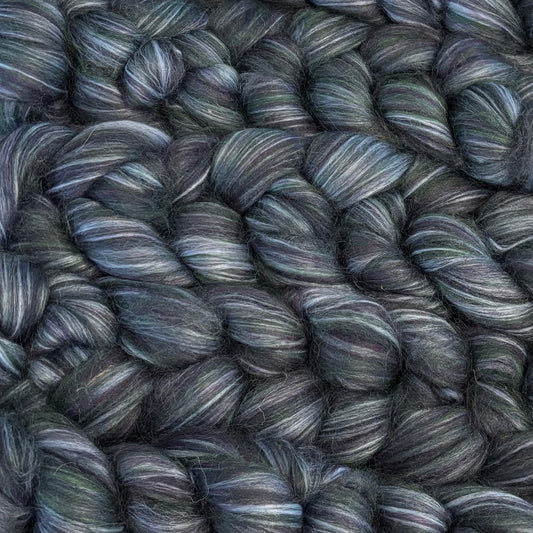 Heather Haze - Black & Grey Shetland Wool & Bio-Nylon Combed Top - Roving -Spinning Fiber for Spinning Wheel