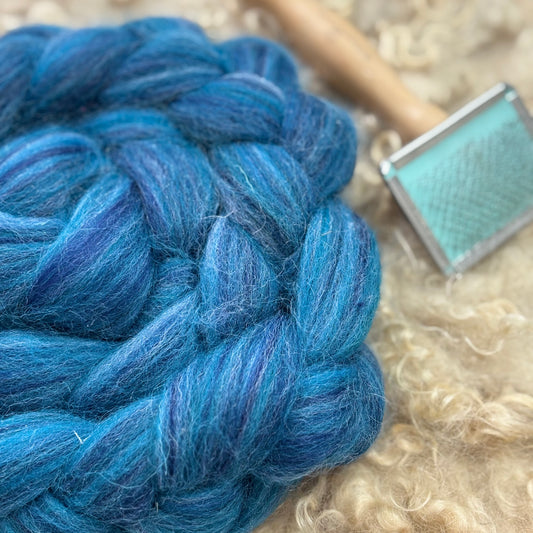 Typhoon - Blue Merino Wool Blend - spinning fiber for beginners