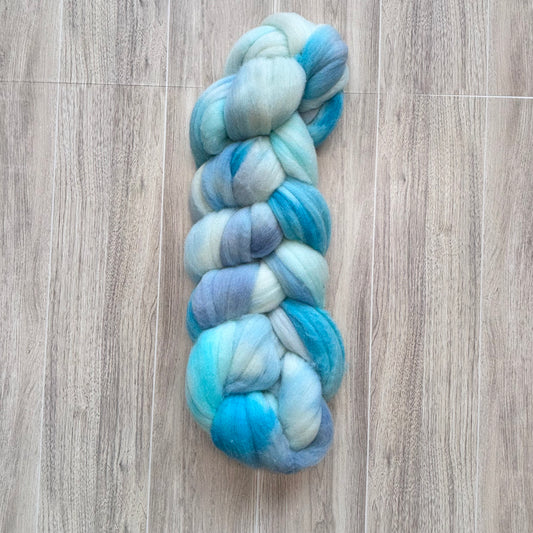Fountain Blue - Shetland Wool & Bio-Nylon Blend - Combed Top - Roving -Wool Fiber for Spinning