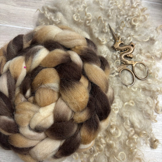 Mars Wool Top- Brown, Cream & Tan - Combed Top - Wool Roving for Spinning wool or felting