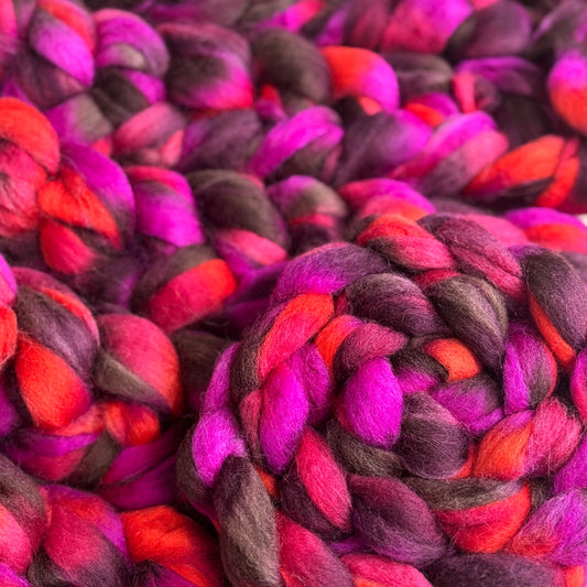 Saturn Wool Top - Pink, Brown, Orange - Combed Top - Wool Roving for Spinning wool or felting