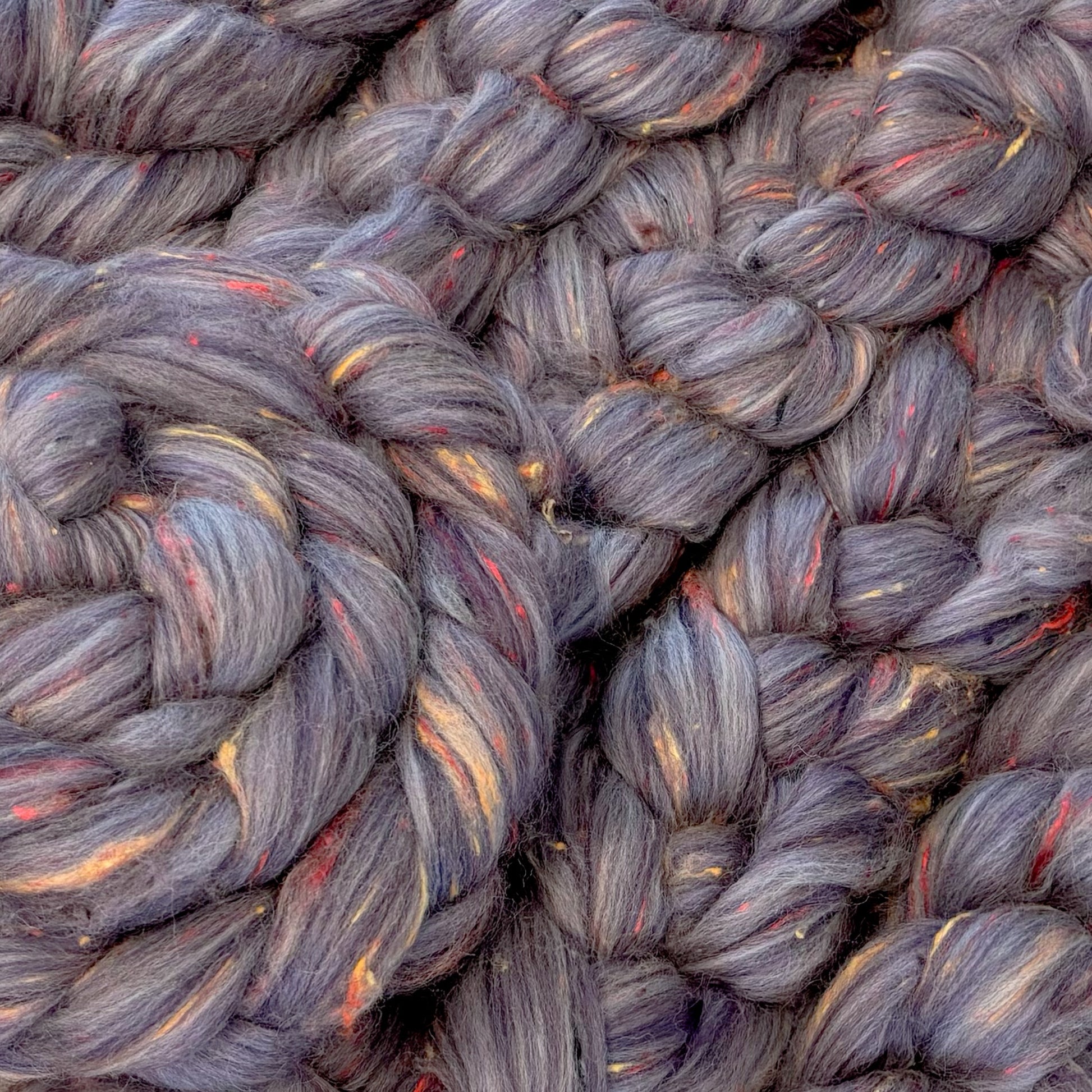 Indulgent Spotted Dick - Purple Polwarth Wool & Viscose - Wool Fiber for Spinning