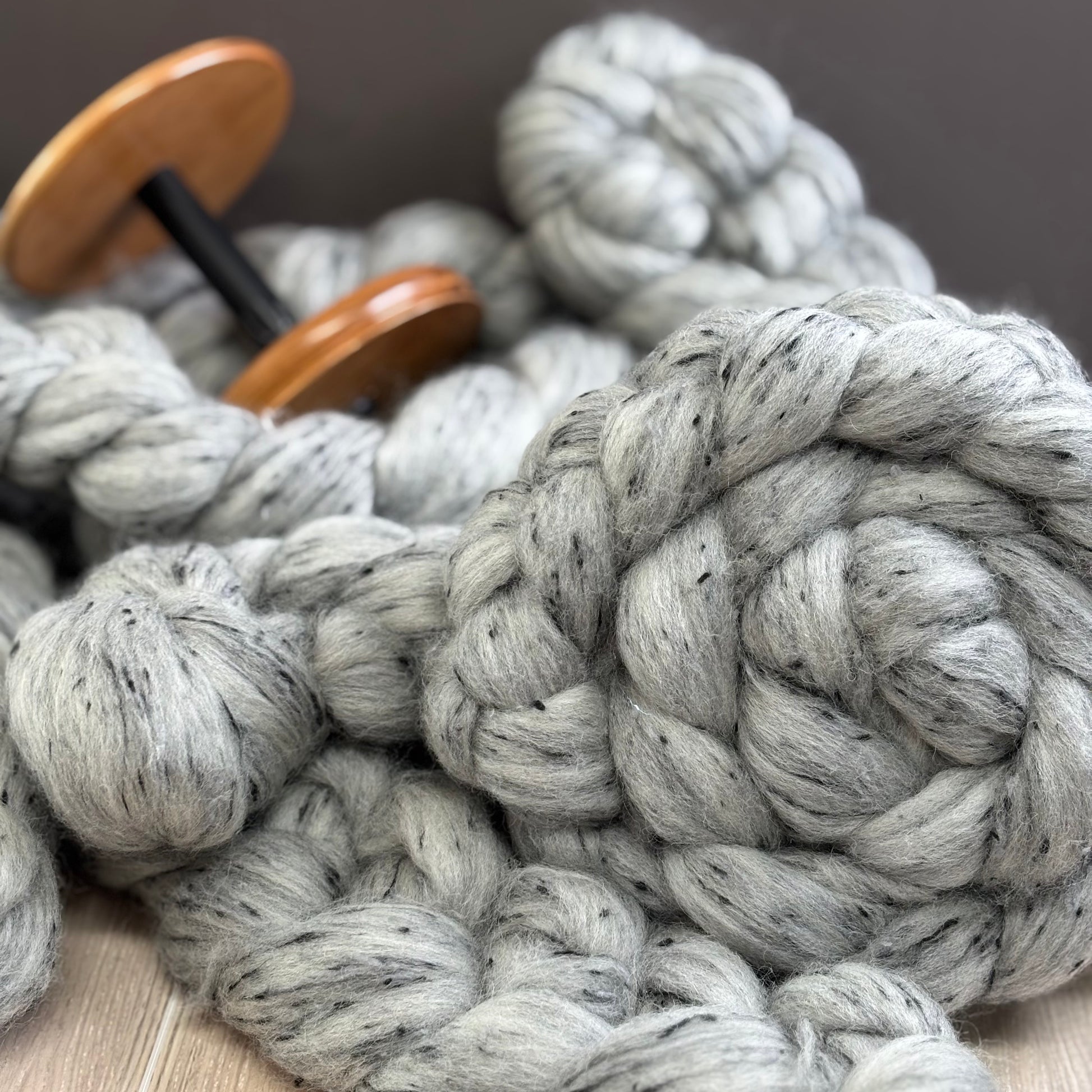 Railway Gray Tweed Roving – Timeless Fiber for Spinning & More