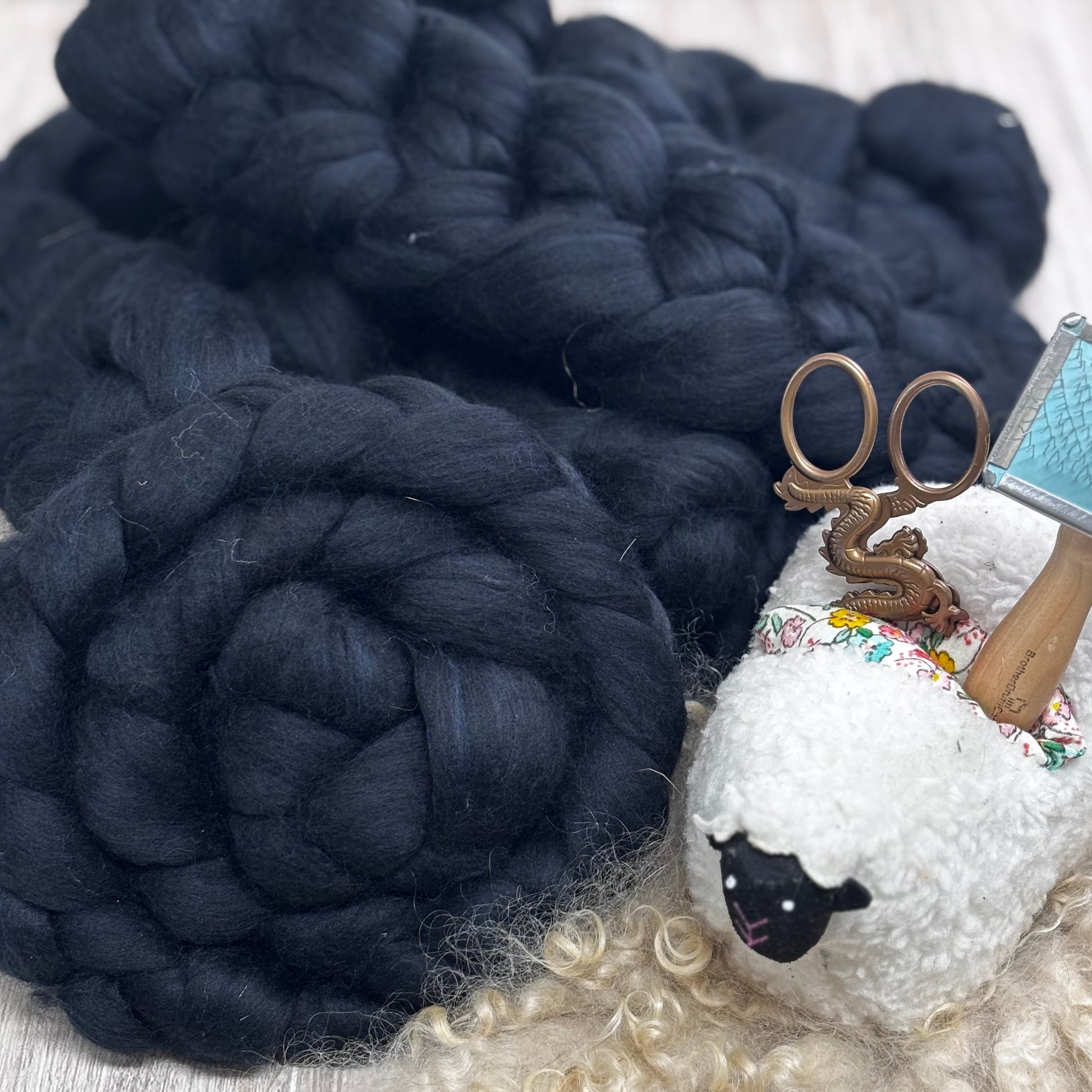 Raven – Superfine Merino Wool Combed Top Roving – Spinning Fiber for Beginners & Fiber Arts