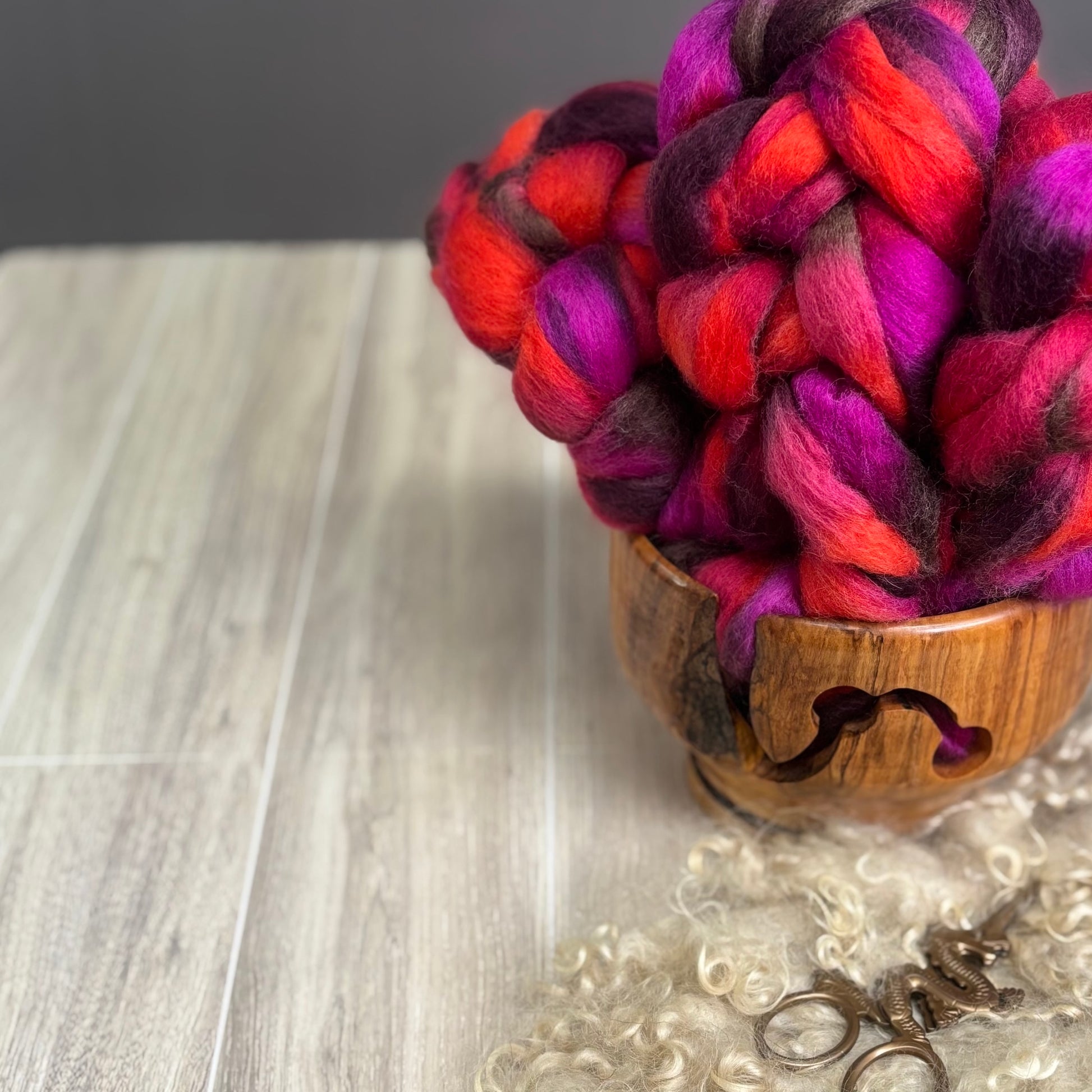 Each braid comes in a 4 oz bundle, giving you plenty of this vibrant roving wool to explore in your next fiber arts project.