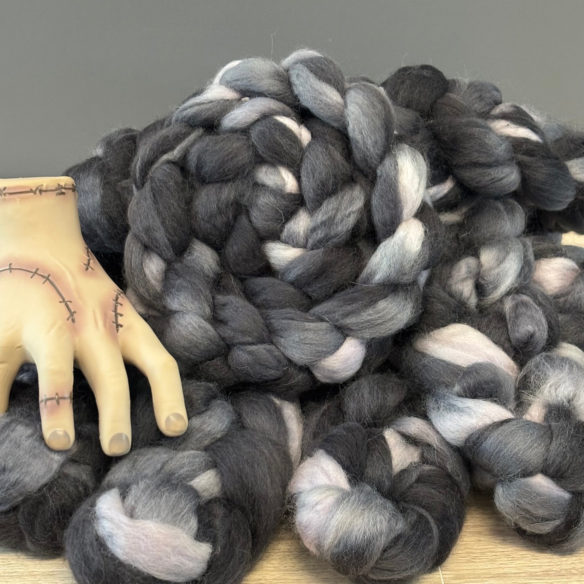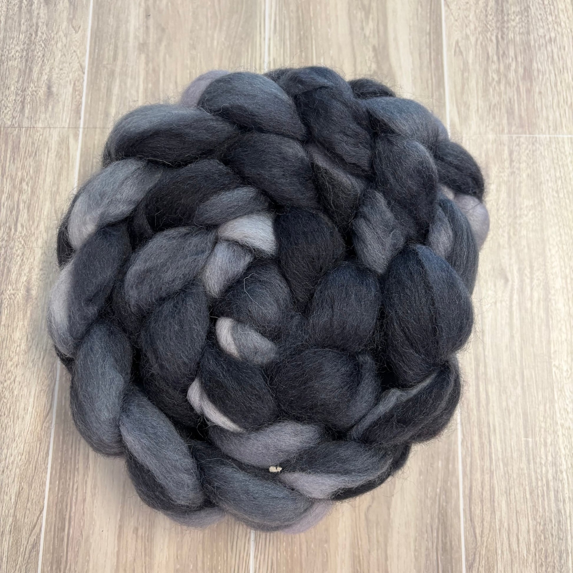 Titan Wool Top - Black & Cream - Combed Top- Wool Roving for Spinning wool or felting _Hand Dyed