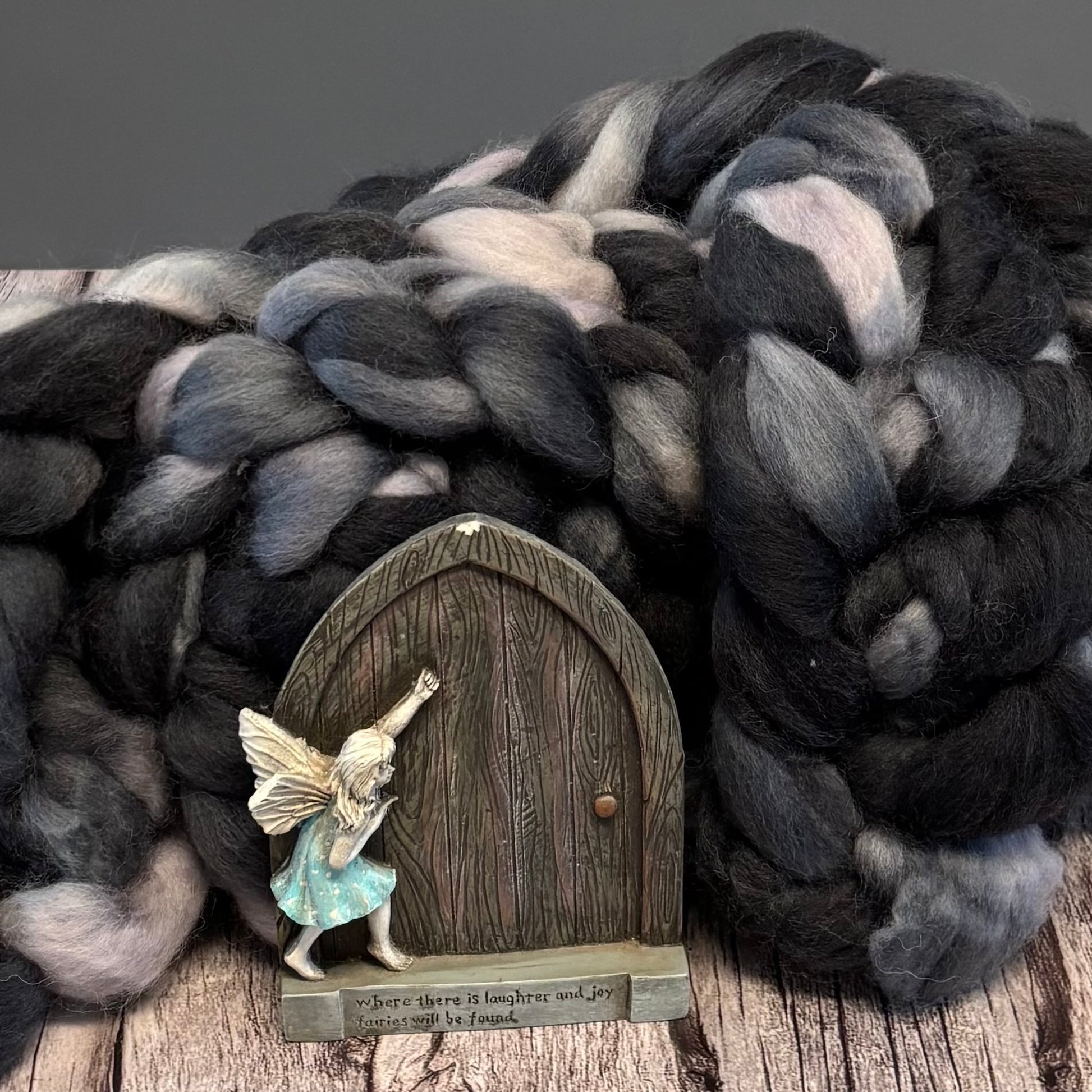 Titan Wool Top – Black & Cream Combed Top Roving – Wool Fiber for Spinning & Felting